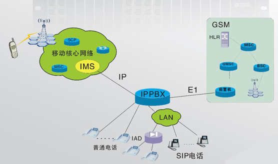 IP PBX接入IMS網(wǎng)絡(luò)總體組網(wǎng)圖