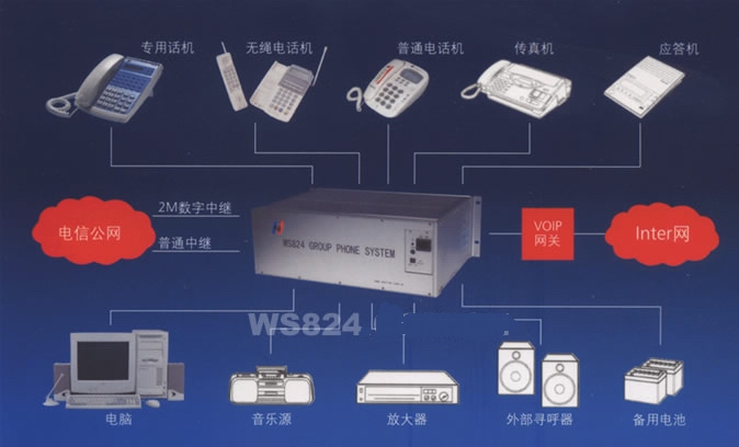 簡單介紹一下企業(yè)公司數(shù)字程控電話交換機(jī)系統(tǒng)的連接圖,下面以國威6D電話系統(tǒng)圖為例進(jìn)線可為2M數(shù)字中繼、普通中繼;出線可數(shù)字專用話機(jī)、無繩電話機(jī)、普通電話機(jī)、傳真機(jī);功能擴(kuò)展部分可連接電腦話務(wù)員、應(yīng)答機(jī)、電腦、音樂源、放大器、外部尋呼器、備用電池。